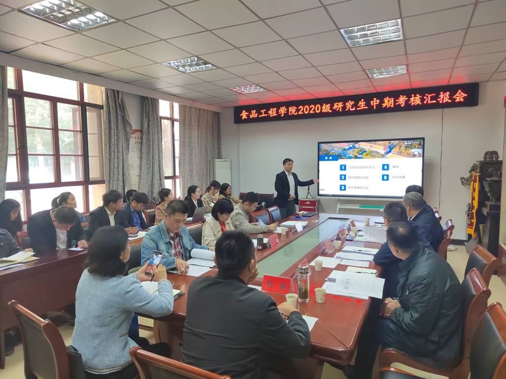 为深入了解和及时掌握研究生学位论文进展情况,督促其推进课题进度,提高学位论文质量,根据我校2020级硕士研究生中期考核工作安排,10月14日,食品工程学院在学院会议室组织开展了2020级研究生中期检查考核工作。