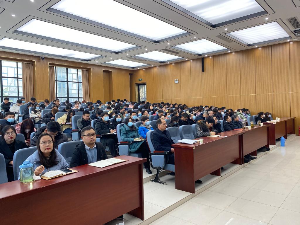 王有炜教授以“用奋斗书写无愧于伟大时代的华章”为主题,从“深刻领会党的二十大的重大意义、准确把握党的二十大精神实质、迅速兴起学习宣传贯彻党的二十大精神的热潮”三个章节进行阐述,旗帜,送理论,梳理了党的二十大召开过程中的重要事件,系统宣讲了党的二十大主题和主要成果、过去5年的工作和新时代10年的伟大变革、马克思主义中国化时代化、中国式现代化、全面建设社会主义现代化国家的目标任务、坚持党的全面领导和全面从严治党、应对风险挑战等重要内容。
