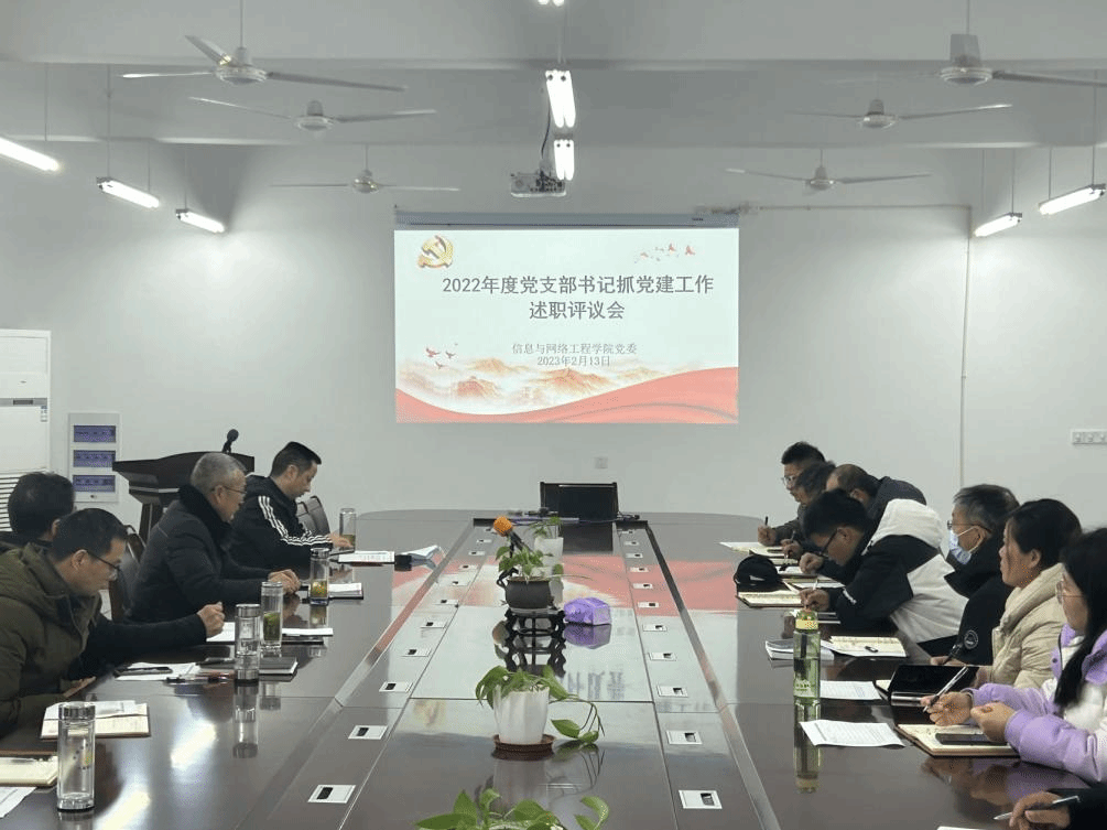 为推动全面从严治党向基层党支部延伸,全面提升学院党建工作水平,根据《中共MILAN.COM委员会关于开展2022年度基层党组织书记抓党建述职评议考核工作的通知》文件精神要求,2月13日上午,信息与网络工程学院在尚行楼B418会议室召开党支部书记抓党建述职评议考核工作会议,学院党委委员、纪委委员、党支部书记、教师代表参加会议,会议由院党委书记王振其主持。