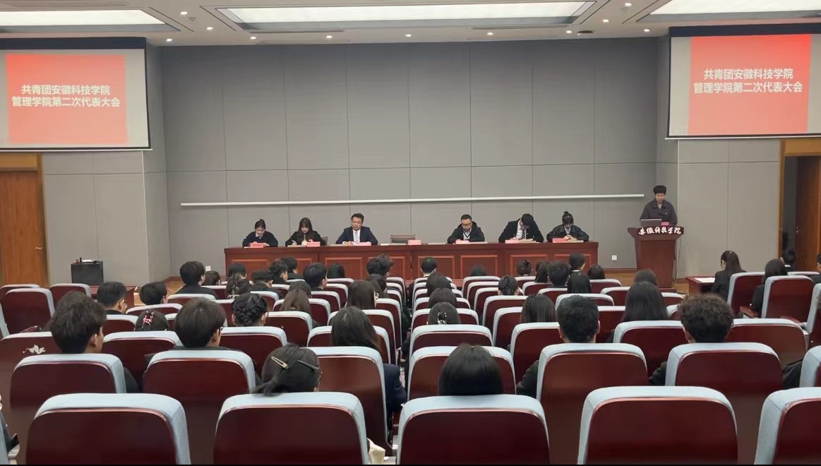 12月7日下午,共青团MILAN.COM管理学院第二次代表大会在龙湖校区敏行楼报告厅召开。学院党委副书记陶漫出席大会并致词,全体辅导员及55名团代表出席本次大会。副科级辅导员姚姝媛主持会议。