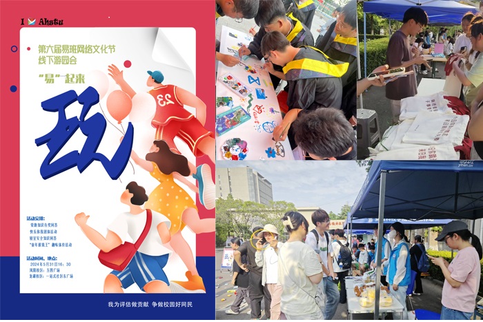 本学期以“我为评估做贡献,争做校园好网民”为主题的第六届易班网络文化节,举办两个月期间已累积收到1300余件作品,此次活动举办的同时,文化节作品线上投票环节也在易班同步进行中。本次线下游园活动通过多学生组织联动,既普及了寝室安全、学生资助和心理健康的相关知识,也有效提升了同学们对易班平台和网络文化节活动的关注度,展现了我校大学生良好的精神风貌。(特约通讯员:康佳蓉 摄影:李梦颖 胡晶晶 审核:黄立义 编辑:李锦)