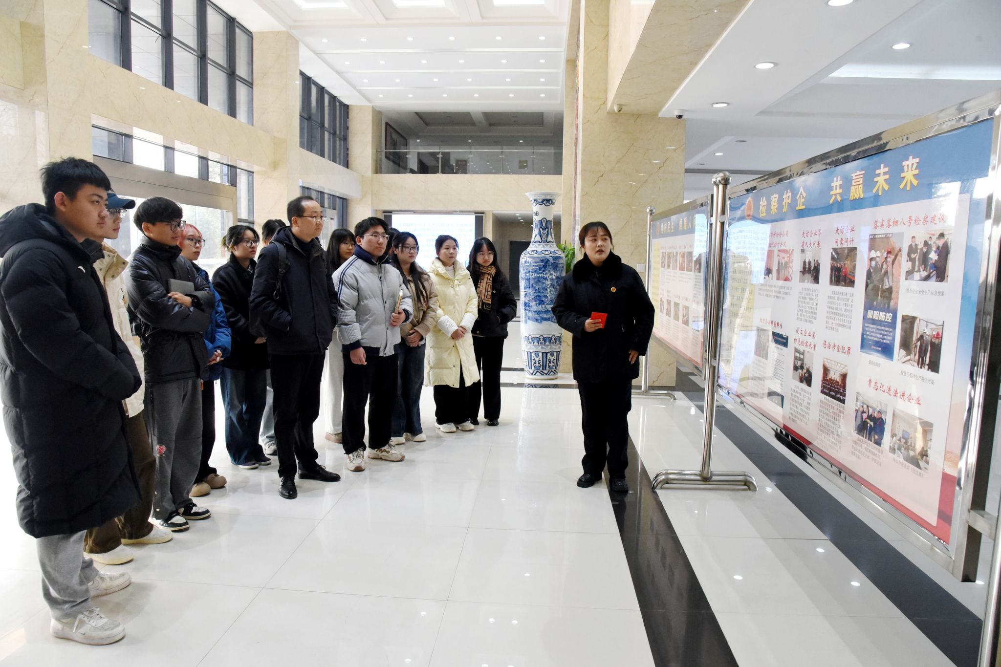 座谈结束后,同学们在检察院工作人员的热情接待下,有序地参观了检察院控告申诉大厅、案件管理中心等各个工作区域,直观地感受到了检察工作严谨规范的氛围和高效有序的流程。
