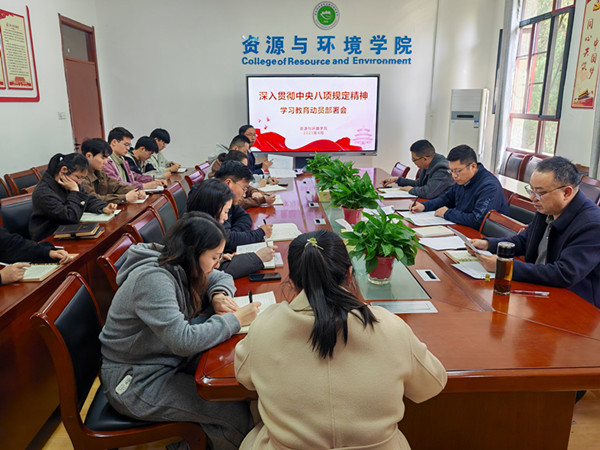 4月2日下午,资源与环境学院党委召开深入贯彻中央八项规定精神学习教育动员部署会。会议传达学习了中共中央、省委党的建设工作领导小组会议精神和校党委有关工作部署,全面启动深入贯彻中央八项规定精神学习教育。学院党政领导班子成员、科级以上干部、党支部书记、师生党员代表参加会议。会议由学院党委副书记、院长李孝良主持。