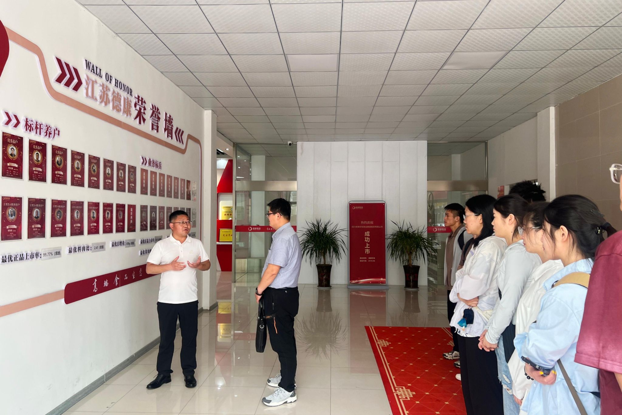 随后,在公司的精心组织下,师生一行走进杨岗洗消中心、太平养殖场及双沟饲料厂,实地探访智能化生产管理流程,沉浸式感受德康集团在养殖防疫、生态养殖及饲料加工领域的技术创新与标准化管理情况。