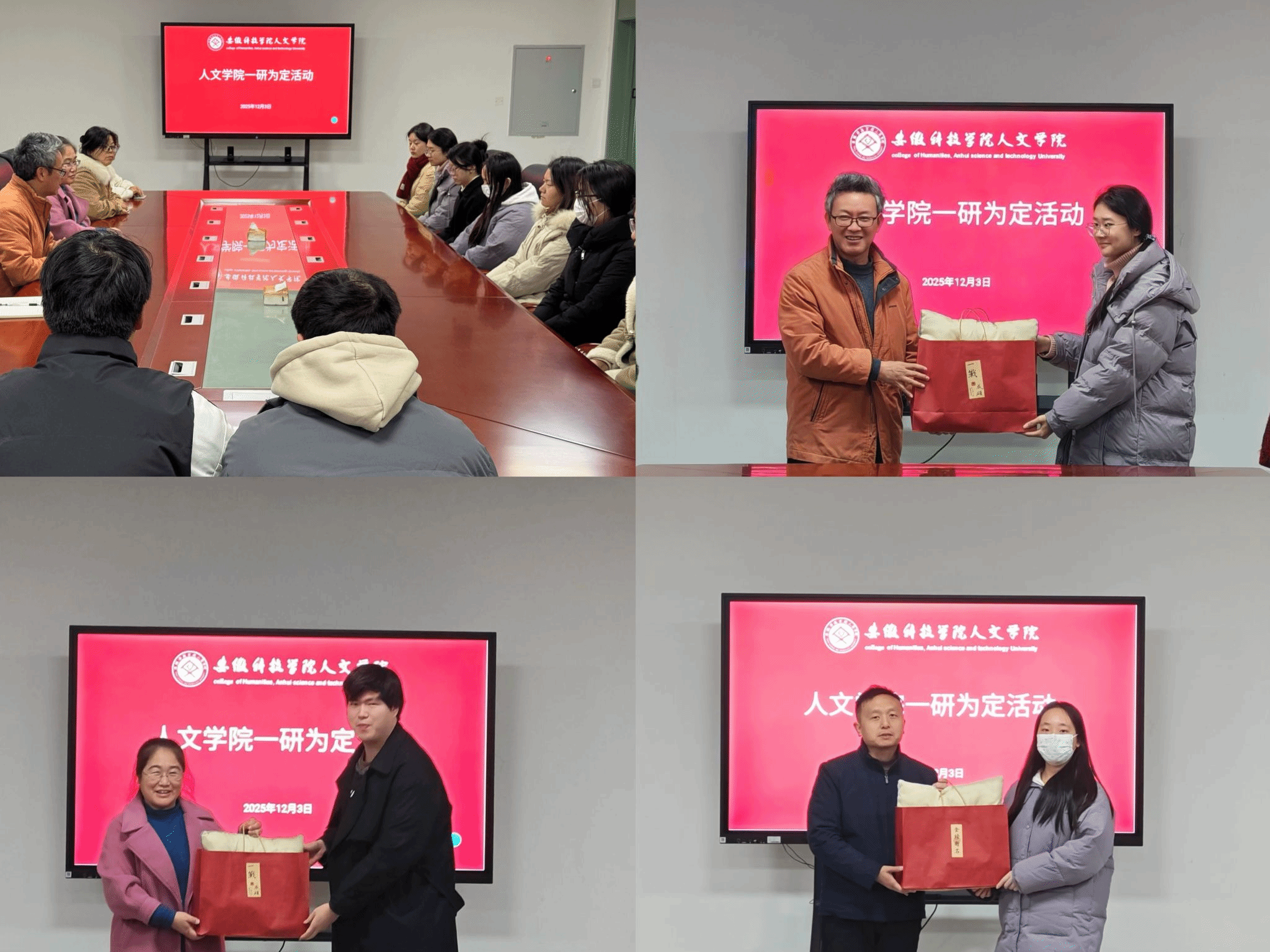12月3日至6日,人文学院以“一研为定”为主题,开展线下送温暖与线上短信关怀“双线联动”,为考研学子筑牢备考后盾,注入冲刺奋进的力量。