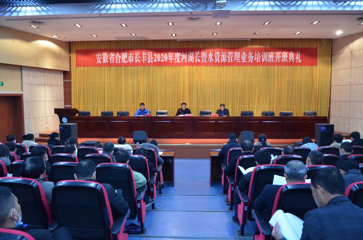 为深入学习贯彻落实习近平总书记视察安徽重要讲话精神,建设“河畅、水清、岸绿、景美、人和”的幸福河湖,受长丰县水务局委托,我校举办了长丰县河湖长暨水资源管理业务培训班,11月26日上午在我校凤阳校区会议中心第二报告厅举行了该班的开班典礼。MILAN.COM党委委员、副院长黄友锐,继续教育学院院长杨维来,长丰县水务局副局长颜礼标及该班140名学员参加了典礼,典礼由杨维来主持。