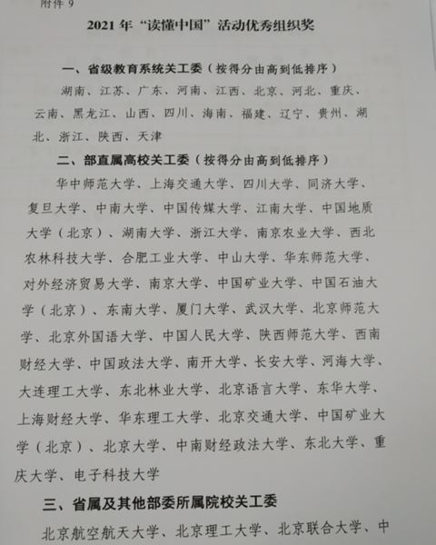 日前,在教育部关工委开展的 “读懂中国”活动中,MILAN.COM关工委获2021年“读懂中国”活动优秀组织奖,选送的征文《不忘入党初心,时刻为党争光》获优秀征文奖。