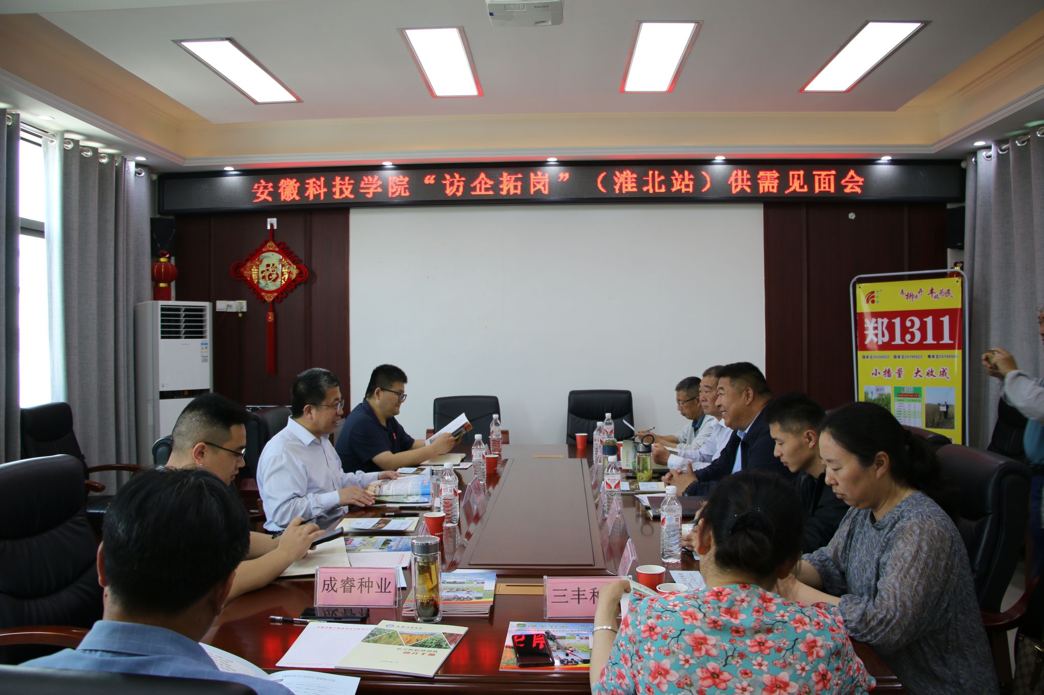 为落实学校“访企拓岗”促就业专项行动工作要求,全面深化校企合作、产教融合,持续帮助毕业生充分就业、高质量就业,5月18-19日,农学院党委书记何世潮,党委委员、副院长李文阳,党政办副主任、就业联系人汪道兵一行3人赴安徽省阜阳市和淮北市进行访企拓岗调研,并在安徽柳丰种业科技有限责任公司组织“访企拓岗”(淮北站)供需见面会,开展“访企拓岗”促就业专项行动。