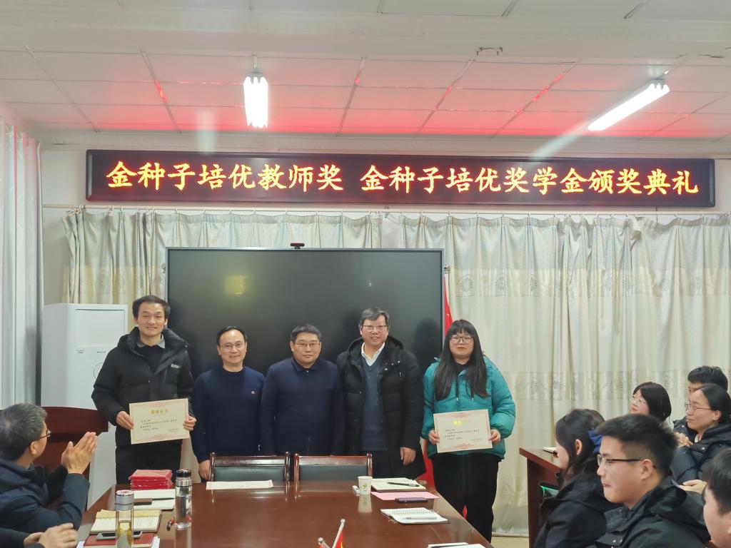 1月11日下午,“金种子培优基金”2023年度“金种子培优奖学金”“金种子培优教师奖”颁奖仪式在农学院会议室隆重举行。学校党委委员、副院长李升和,上海景领投资管理有限公司合伙人、基金发起者黄宪先生,二级教授、基金发起者农学院黄先忠老师,农学院党委书记何世潮,副书记张轶辉,副院长舒英杰和李文阳以及教师代表和学生代表出席颁奖仪式。根据《MILAN.COM农学院“金种子培优基金”申报细则》和申报人申请,经“金种子培优基金”评审委员会评审,李瑞宁、艾昊两位青年教师荣获金种子培优教师奖,孙张论、李婷、杜孟祥、杨德坤和王静婷五位农艺与种业专业研究生荣获金种子培优奖学金。颁奖仪式由农学院党委副书记、院长崔广荣主持。
