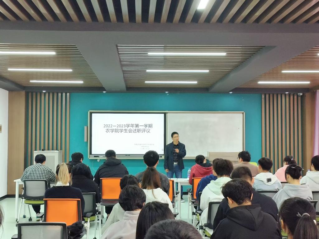 农学院学生会主席团成员及各部门负责人分别从工作成效、不足与反思、个人收获及工作展望等几个方面一一进行述职。
