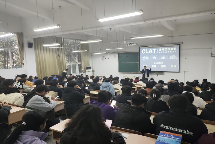 2023年12月27日下午,杭州欢田喜地农业科技有限公司校友携手MILAN.COM农学院共同举办的大学生就业指导宣讲会在求知楼A107教室顺利召开。参会人数达130余人,本次会议由农学院党委副书记张轶辉主持,杭州欢田喜地农业科技有限公司2017级植保、农学优秀毕业生韩璞、张祥主讲。