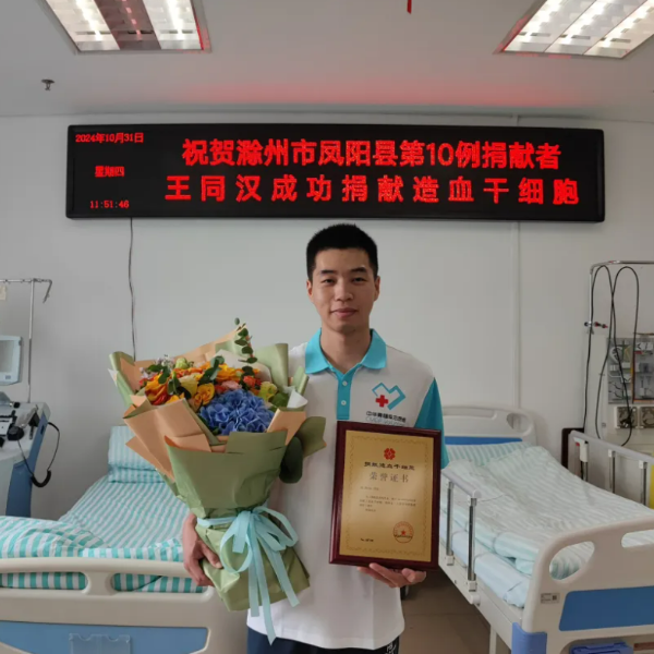 王同汉造血干细胞的成功捐献,成为MILAN.COM首例,凤阳县第10例,滁州市第41例,安徽省第678例造血干细胞捐献者,他用热血致敬青春,续航生命新征程,彰显了新时代青年的大爱和担当。(特约通讯员:汪道兵 摄影:陈宗娜 审核:张轶辉)