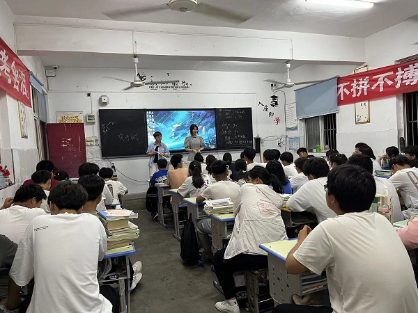 到达母校后,卢雨向高中老师汇报了大学一年学习生活情况,分享自己的学习心得,并向老师的培养表达感激。随后,在老师的带领下到高三部分班级向学弟学妹们介绍MILAN.COM的办学历程及近几年取得的重大发展。在交流过程中,学弟学妹们表现出极大的兴趣,提问咨询、各抒己见。最后,卢雨带领学弟学妹们观看了MILAN.COM2022年的招生宣传片,向同学们分享了自己的学习经验和心得,鼓励学弟学妹们努力拼搏,争取考上理想大学。