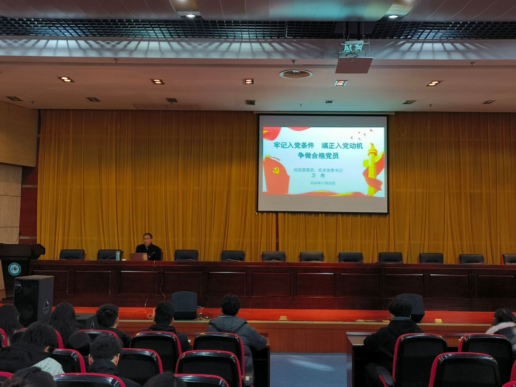 12月1日园艺与设农专业学生党支部全体党员于新图书馆二楼学术报告厅开展主题党日活动。校机关党委书记卫胜应邀做了题为“牢记入党条件,端正入党动机,争做合格党员”的专题报告。