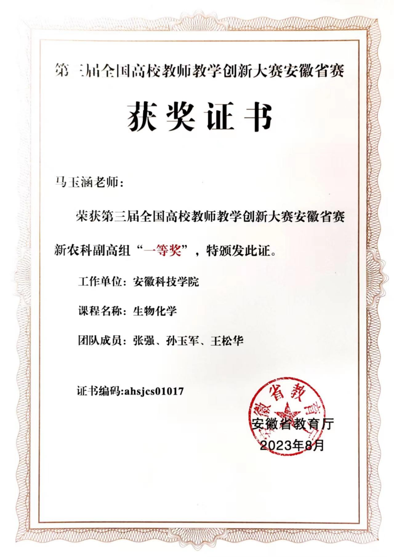 课程建设:学院现有安徽省级精品资源共享课程3门:《生物化学》、《药用植物学》和《中药药理学》;安徽省级教学示范课程5门:《生物药剂学与药物动力学》、《药用植物学》、《生物化学》、《中药药理学》和《现代生物工程学》;安徽省级大规模在线开放课程(MOOC)2门:《植物学》和《生物化学》;线下一流课程1门:《生物工程综合实验》;校级精品课程3门:《动物生物学》、《微生物学》和《生物化学》;省级课程思政示范课程2门:《生物工程综合实验》和《生物药剂学与药物动力学》;线上线下混合式课程 2门:《基础生物化学 》和《微生物学》;省级示范实验实训中心2个:生物医药与健康实验实训中心、中药科技园实验实训中心;校级示范实验实训中心1个:基础生物实验教学中心。