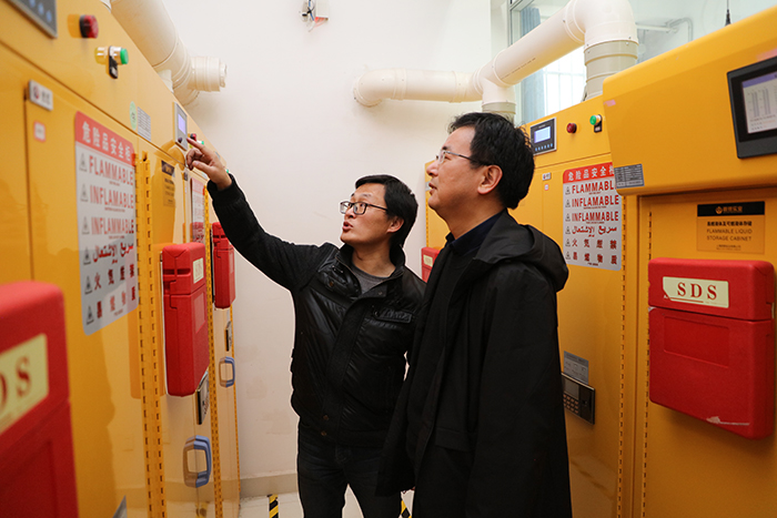 本次检查按照“零容忍、全覆盖”的要求,不留死角,不余盲区。相关学院主要负责人高度重视,亲自组织指导自查自纠工作。安全检查中也发现了一些问题,如个别实验室未落实双人双锁措施、药品未做到每学期盘存等。针对检查出的隐患,实验室与实践基地管理处将下达“实验室安全隐患整改通知书”,要求相关学院限期整改到位。下周学校将开展第二阶段(四个学院)安全规章制度落实情况专项检查,通过以查促改,全面提升实验室安全工作水平。(特约通讯员:杨久峰,审核:戚邦华, 摄影:陈宝)