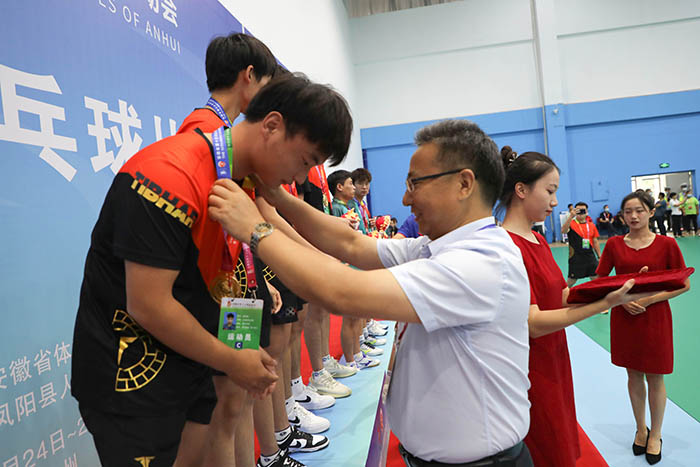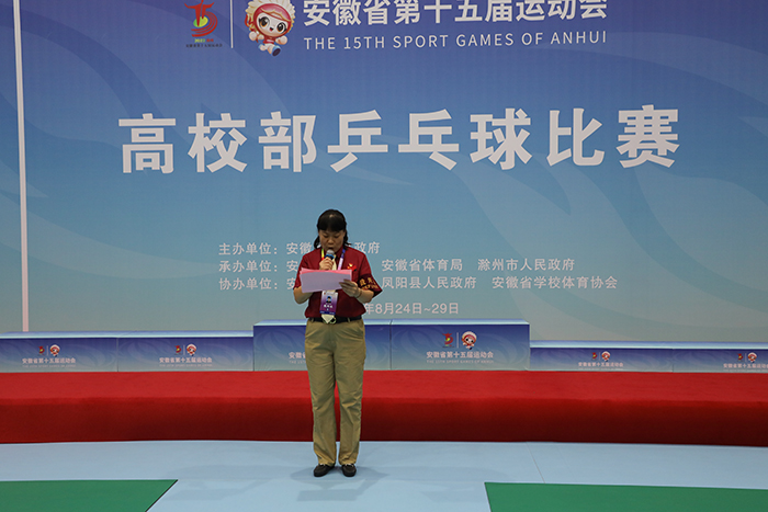 8月26日下午,历经三天的激烈角逐,安徽省第十五届运动会高校部乒乓球比赛第一阶段赛事团体比赛正式落幕。颁奖仪式在MILAN.COM凤阳校区体育馆举行。
