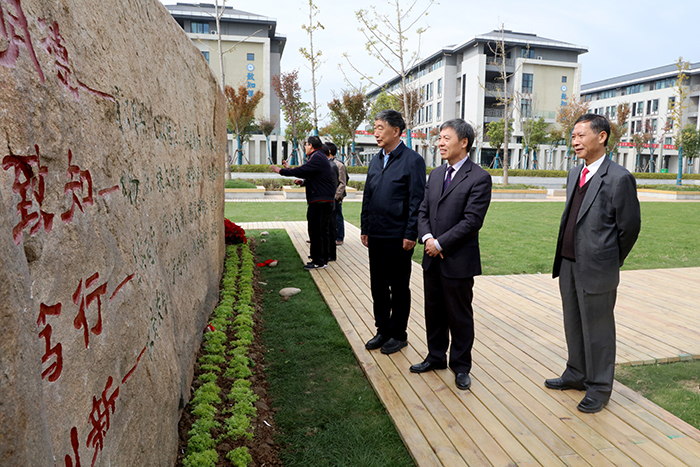 蒋德勤表示,新校训、新校训石将是学校重要标识,既是美丽的风景,更是学校校园文化和“安科精神”的重要载体。蒋德勤要求,全校上下要结合校庆系列活动,积极开展校训及释义的学习宣传活动;要立足本职与现实,坚持以实际行动展示校训的文化传统和正能量;要弘扬传承校训所蕴含的精神与感召力,使我校的校训精神发扬光大,源远流长;要秉承“明德、致知、笃行、创新”的校训精神,全面提高人才培养能力,实现高质量发展,努力把学校早日建成现代化全国一流应用型大学。校领导、捐赠企业领导为校训石揭幕,并参观校训石。(特约通讯员:张以保 摄影:陈宝 审核:曾献功 卫胜 编辑:汤帅)