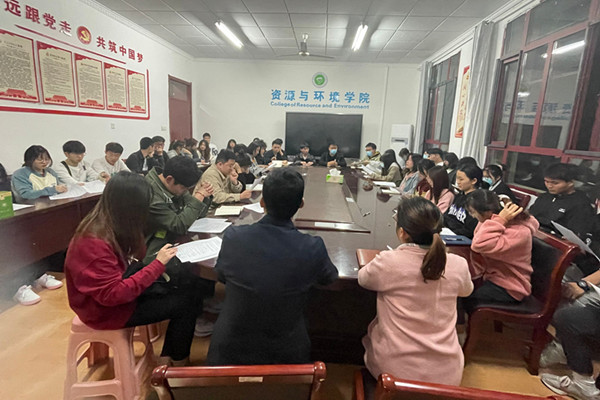 为扎实做好疫情防控期间学生心理健康工作,提升心理育人成效,2022年4月15日晚,资源与环境学院于学院会议室召开心理委员培训会议,学院党委副书记沈树周、心理辅导员老师杨小晗参加会议,全体心理委员参加。会议由杨小晗主持。