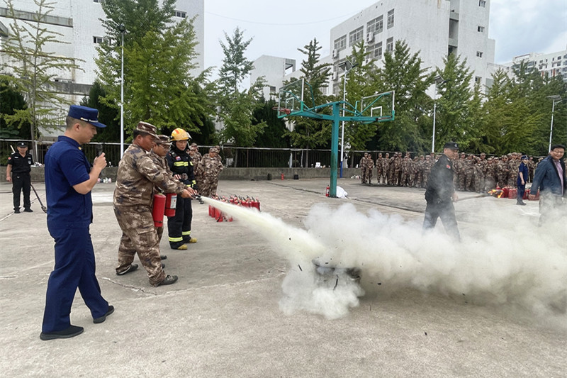 在灭火演练中,凤阳县消防大队宣传教员为师生宣讲了校园消防安全基本知识、干粉灭火器使用方法和大学生公寓等消防重点单位防火注意事项,以及初起火灾扑救与逃生方法。消防救援大队工作人员向全体参演人员展示了先进的消防救援装备,现场演示专业化火灾扑救技能,现场指导广大同学使用灭火器扑救初起火灾。