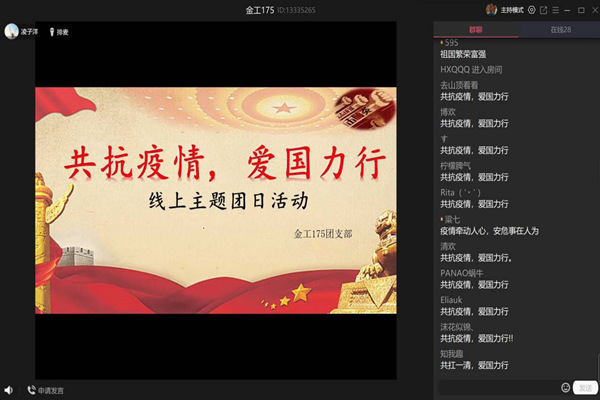 各团支部充分利用易班、QQ、腾讯会议等网络平台,通过“抗疫先进事迹”微视频观影、支部书记讲团课、各支部抗疫志愿者分享工作感受等多种形式,充分了解党和国家为做好疫情防控工作所采取的重大决策与措施举措;学习宣传全国一盘棋、举全国之力支援湖北的生动事迹;感受共抗疫情中体现的中国精神、中国力量、中国速度。