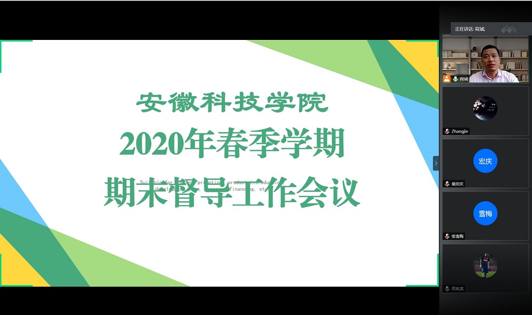 2020年7月10日,学校通过腾讯会议平台召开2020年春季学期期末督导工作会议,校院两级教学督导员、教学督导办公室人员参加会议,会议由教学督导办公室主任程斌主持。