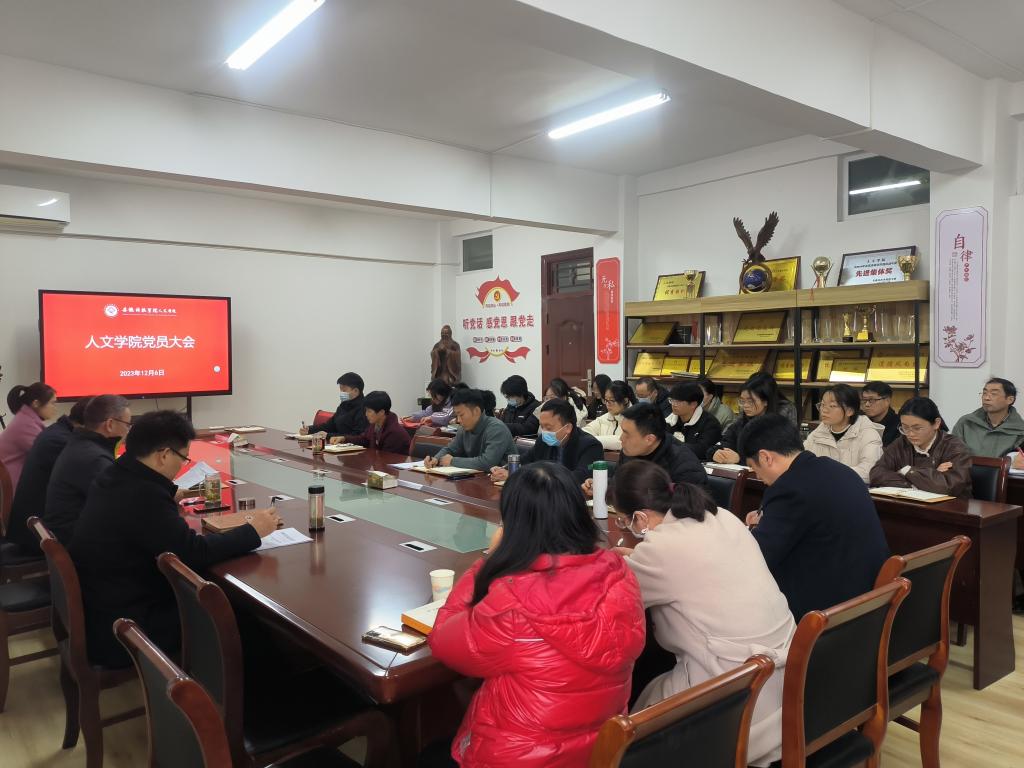 12月6日下午,人文学院党委在学知楼324会议室召开全体党员大会,补选中共MILAN.COM第三次代表大会代表,开展全面从严治党宣传教育,会议由正处级组织员张严政主持。