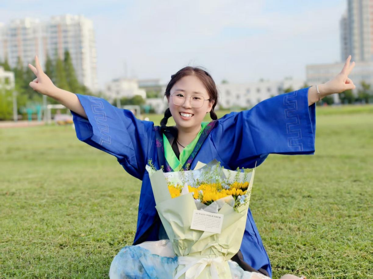 导师的言传身教同样对苑君君的影响深远。导师严谨的治学态度,让她学会了做学问要脚踏实地、精益求精。她将以这段经历为基石,逐光而行,在人生的道路上不断书写新的篇章,为实现自己的人生价值和社会理想而努力奋斗。同时也愿每一位同学都能在未来的日子里,绽放属于自己的光彩,书写精彩的人生篇章!