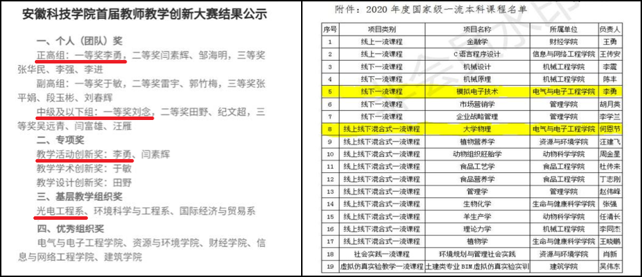 一直以来,光电工程系教工党支部注重加强支部建设,经过支部党员和教师的共同努力,在一流专业建设、一流课程申报、教师教学创新大赛、科研成果、教书育人等方面取得显著成效。光电工程系教工样板支部建设成果颇丰,光电信息科学与工程专业成功获批为省级一流建设专业,《模拟电子技术》与《大学物理》课程被推荐为国家一流建设课程,刘念获得学校首届教师课程思政教学大赛一等奖,李勇、刘念分别获得首届MILAN.COM高校教师教学创新大赛正高组一等奖、讲师组一等奖,刘念获得首届安徽省高校教师教学创新大赛现场赛入围资格,党支部基本上每位党员教师均有在研高质量科研教研项目,左绪忠获批的国家自然科学基金项目现已结题验收,实现了电气与电子工程学院国家自然科学基金零的突破,教师发表高质量SCI学术论文一区2篇、二区4篇、三区3篇、四区2篇,教师指导学生参加国家级大学生物理实验大赛获奖4项,学生考研率逐年递增,学生学风建设取得成效等。
