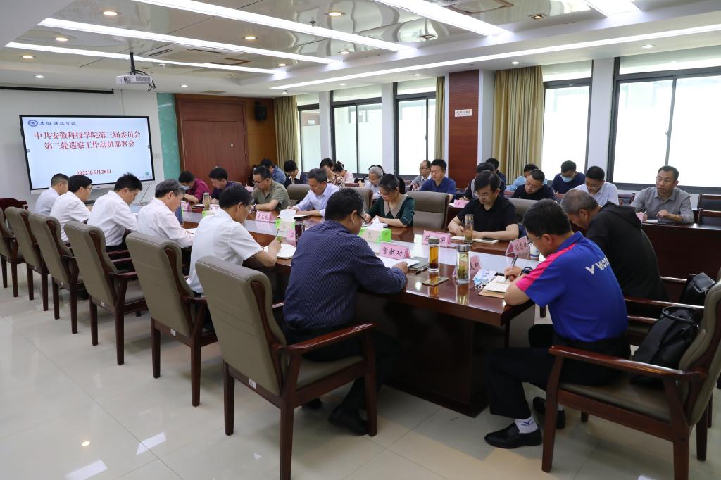 会上,党委巡察办主任曾献功宣读了三届学校党委第三轮巡察工作实施方案,党委组织部部长钱锐宣布了三届学校党委第三轮巡察巡察组组成及授权任务分工。