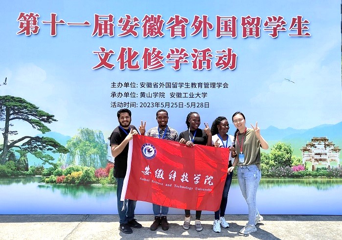 5月25日至28日,由安徽省外国留学生教育管理学会主办,黄山学院、安徽工业大学承办的第十一届安徽省外国留学生文化修学活动在黄山举行。来自省内18所高校的178名国际学生齐聚徽州。省教育厅二级巡视员朱乃韬、省教育厅外事处处长姚德勇、省政府外事办公室民间交流促进处副处长桂大鹏、安徽省外国留学生教育管理学会会长胡健等出席文化修学活动结营仪式并为国际学生们颁发结营证书。我校4名国际学生代表参加该活动。