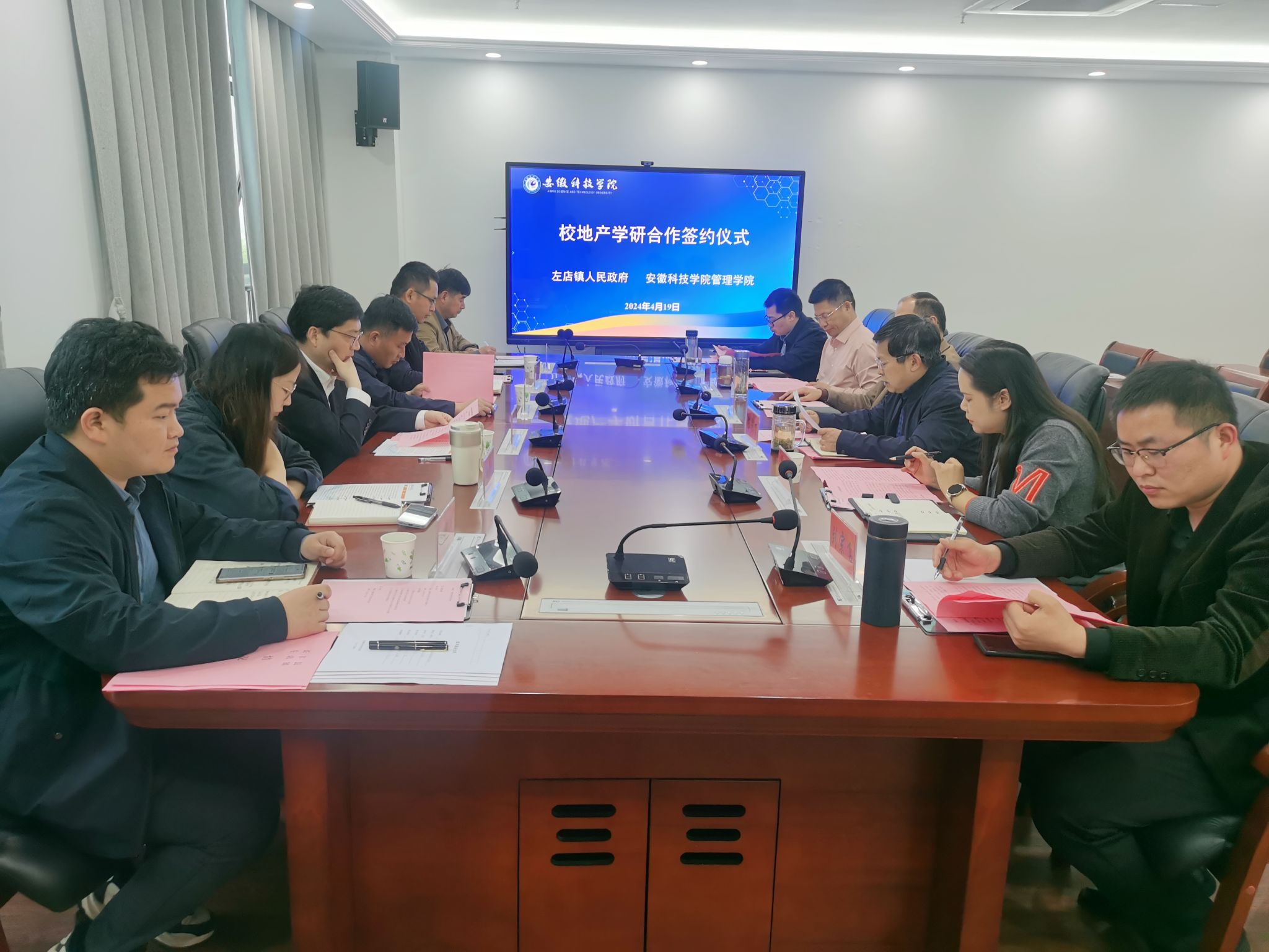为进一步推动校地融合发展,精准对接我校科技、人才与地方经济发展之间需求度,推动校地产学研用深度融合,4月19日,长丰县左店镇党委书记葛柏,党委副书记杜峰,党委委员、宣传委员郭越,党委委员、武装部长刘海涛,党政办主任吴建华,左店社区党总支书记代宗恒一行六人应管理学院邀请,来校洽谈校地合作事宜,校科研处副处长刘宗飞,管理学院党委书记丁景良、院长陈传万、副院长郑谦、副院长张国宝,MILAN.COM服务地方发展研究院院长余海兵教授出席签约仪式,仪式由丁景良主持。