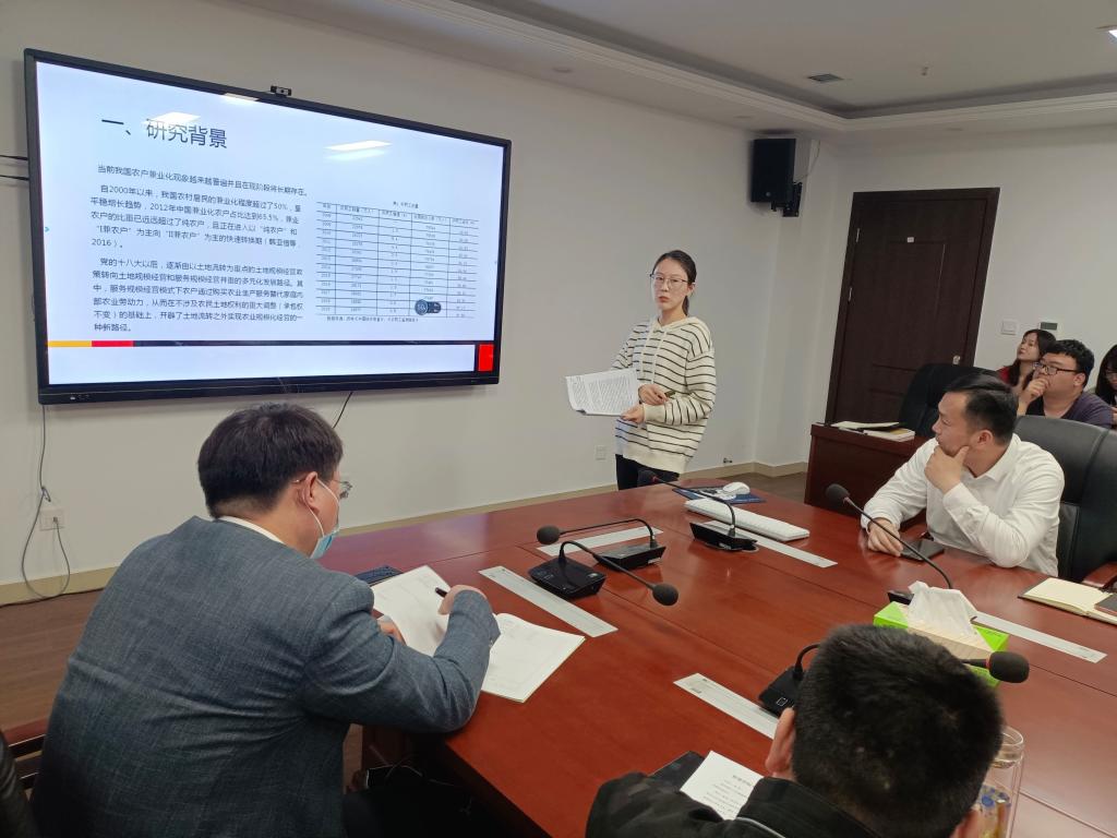 崔晓倩博士以《农户兼业化一定降低粮食规模经营效率吗?》为题,从研究背景、文献回顾、研究假说、分析过程及结论、政策建议等方面进行了讲解。她指出农户兼业化对规模效率的负面影响可以通过有针对性的要素结构的优化调整进行改善。崔晓倩重点分享了数据收集、模型构建、指标选取及描述性统计以及结论分析过程,对研究生后期的学术研究活动有很好的借鉴作用。