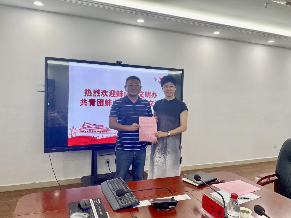 7月14日上午,蚌山区文明办、共青团蚌山区委负责人专程来到我校龙湖校区,送上感谢信、社会实践证明及优秀志愿者证书。对今年5月蚌埠市文化旅游美食季“龙虾啤酒嗨玩节”举办期间,我校在志愿者招募、志愿服务等方面给予的大力支持表示感谢。