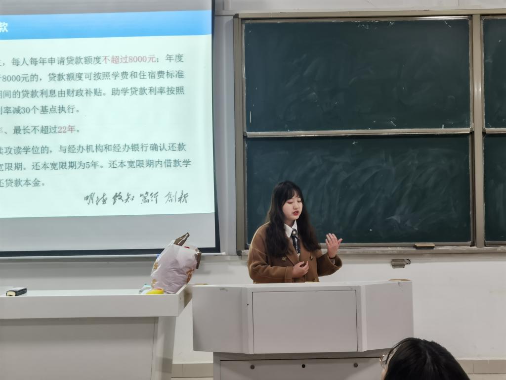 在宣讲会上,姚姝媛介绍了我校健全完善的学生资助体系,带领同学们学习了《MILAN.COM家庭经济困难学生资助管理办法》《MILAN.COM家庭经济困难学生认定工作管理办法》《MILAN.COM本科生国家励志奖学金评审管理办法》《MILAN.COM国家助学金评审管理办法》等文件精神。重点对有关国家奖学金,国家励志奖学金,国家奖助学金,生源地信用助学贷款等资助政策的名额分配、资助标准、评审对象、条件、程序以及材料报送的时间和要求、评审工作中应该注意的事项等进行了解读,并指出本学期各班级做好精准资助工作中存在的不足。