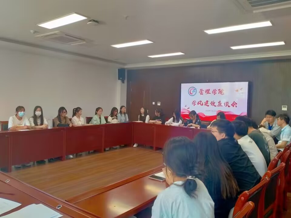 为进一步推深做实学习贯彻习近平新时代中国特色社会主义思想主题教育,了解学生的学习情况,营造良好学习氛围,5月23日中午,管理学院在信息楼225召开了主题教育学风建设专题座谈会。学院党委副书记陶漫出席会议并讲话,座谈会由团委副书记江旭聪主持,学院全体专职辅导员老师及各班学习委员参加了本次座谈会。