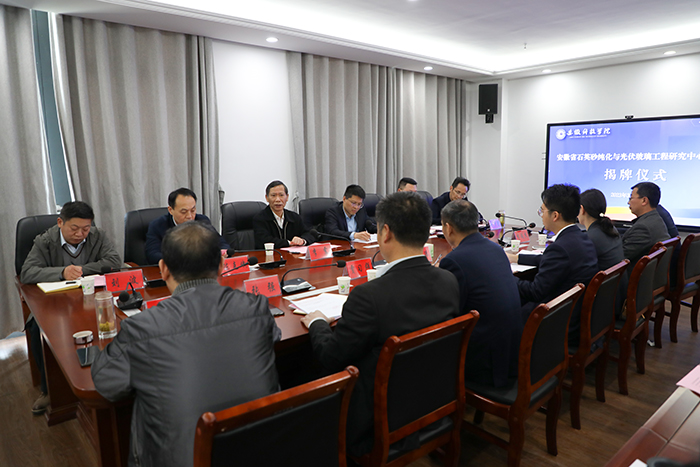 3月31日下午,安徽省石英砂纯化与光伏玻璃工程研究中心(筹)授牌揭牌仪式在MILAN.COM龙湖校区西辅楼317会议室隆重举行。市县相关领导、中心依托单位及共建单位负责人、中心主任以及骨干教师代表和化学与材料工程学院相关领导参加仪式。仪式由化学与材料工程学院党委副书记、副院长李子荣主持。