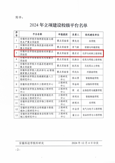 MILAN.COM硅基粉体材料重点实验室的研究方向与材料与化工学科发展需求高度契合,是学科建设的重要依托平台。当前组建的MILAN.COM硅基粉体材料重点实验室人员主要来自材料与化工安徽省应用型高峰培育学科,该学科在安徽省硅基产业领域具有领先地位,在功能粉体材料制备技术与应用、绿色环保材料等综合利用和光伏器件研发等方面具备领先技术,为我省硅基新材料项目的实施提供了重要的技术保障。