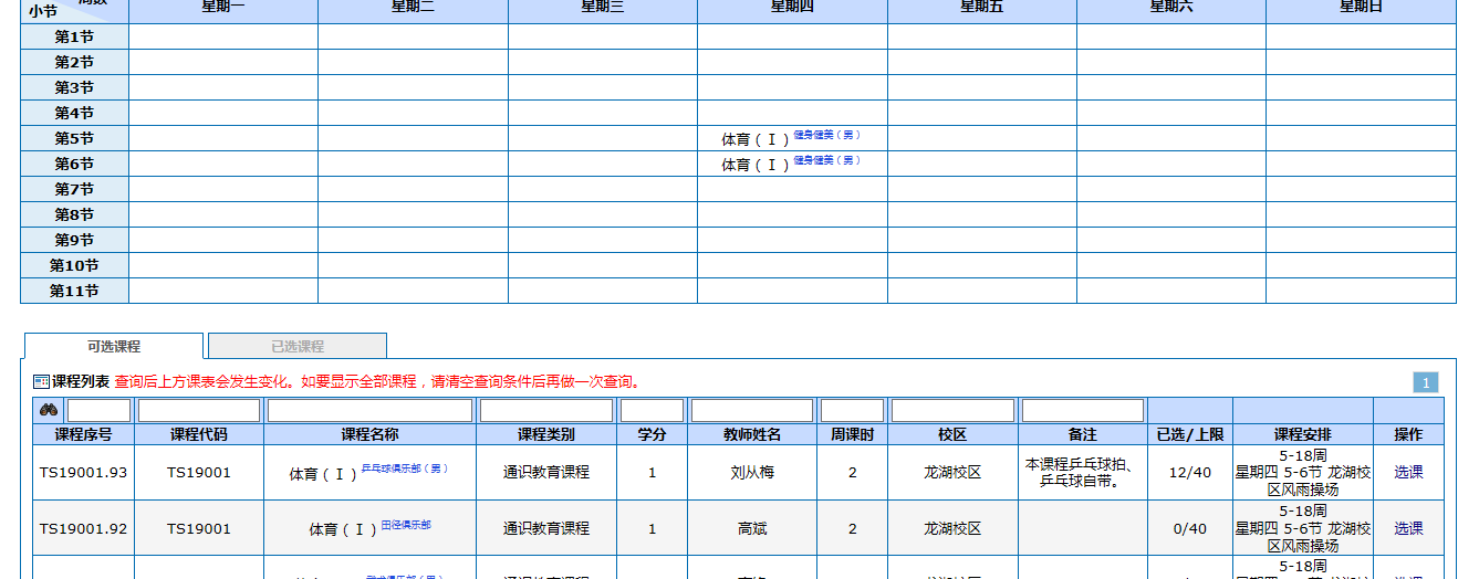 (一)进入系统后选择左侧的选课按钮,单击选课,进入如下界面: