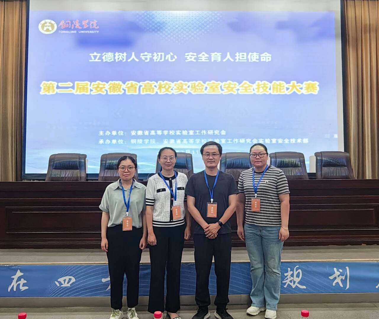 本次大赛由安徽省高等学校实验室工作研究会主办,铜陵学院承办,以“立德树人守初心、安全育人担使命”为主题,综合考核参赛选手的理论积累与实操技能,把排查整治与能力提升贯穿全过程,旨在增强高校实验室安全管理水平,提升安全技能,营造浓厚的实验室安全文化氛围。我校由教务处组织,选派化学与材料工程学院郑胜彪、胡瑞章、陈洁三位老师组队代表学校参赛并参加研讨会。经过角逐,代表队荣获大赛团体三等奖,陈洁获大赛个人奖的三等奖。