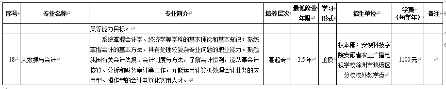 1.我校高等学历继续教育依托安徽继续教育网络园区等教学平台,采取线上教学与面授教学、自主学习与协助学习等相结合的混合式教学,招生专业全部为“函授”非脱产形式。课程设置一般分为公共基础课、专业基础课、专业核心课、职业能力拓展课等。课程考核由过程性考核(平时成绩)与终结性考核(期末考试)相结合。