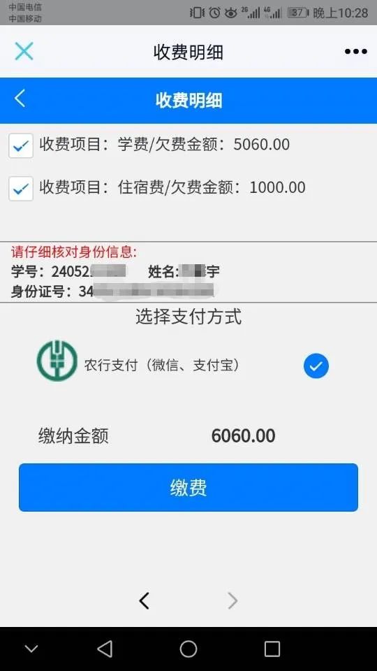5.点击缴费,跳转到微信支付页面(目前仅支持微信支付)