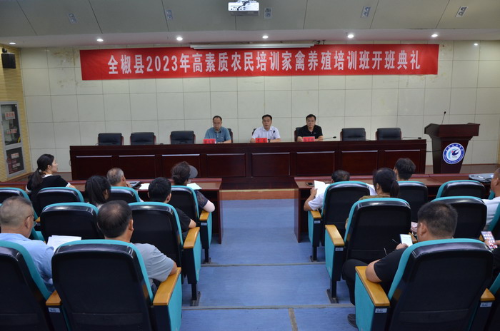 为深入贯彻党的二十大和中央农村工作会议、省委农村工作会议精神,加快推进高素质农民培育工作, 8月6日上午,我校在会议中心第一报告厅举办了全椒县2023年高素质农民家禽养殖培训班开班典礼。全椒县动物疫病预防与控制中心副主任孙克明、继续教育学院副院长(主持工作)李忠、张文国、相关工作人员及来自全椒县近50名养殖合作负责人、兽医技术人员参加了开班仪式。仪式由张文国主持。