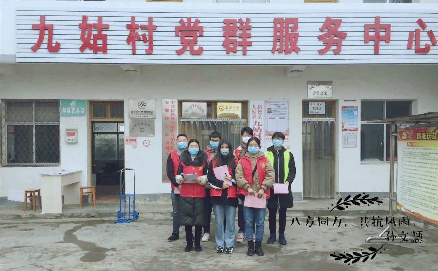 “全国疫情时,众人抗病毒。致敬逆行者,我们志愿行。待到成功时,大家齐欢颜。”