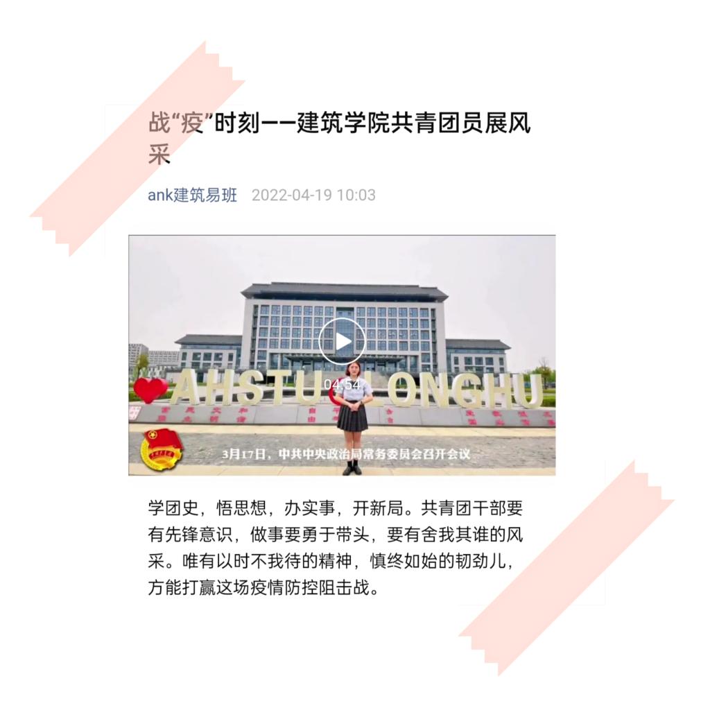 团支部录制的《战“疫”——共青团员的中坚》视频,充分体现了广大团员青年在疫情防控阻击战中贡献青春力量的热情和决心。视频中,张雨欣同学就当下疫情形势进行了系统地讲解,她号召全体共青团员要发挥党的助手和后备军作用,带领班级学生积极作为。罗志娟同学讲述了疫情防控期间建筑学院学子积极参加劳动实践、体育锻炼和文化活动,号召广大青年继续争当表率,以实际行动坚定战胜疫情的决心和勇气。该视频在MILAN.COM建筑学院易班微信平台发布后,反响良好,得到师生一致好评。