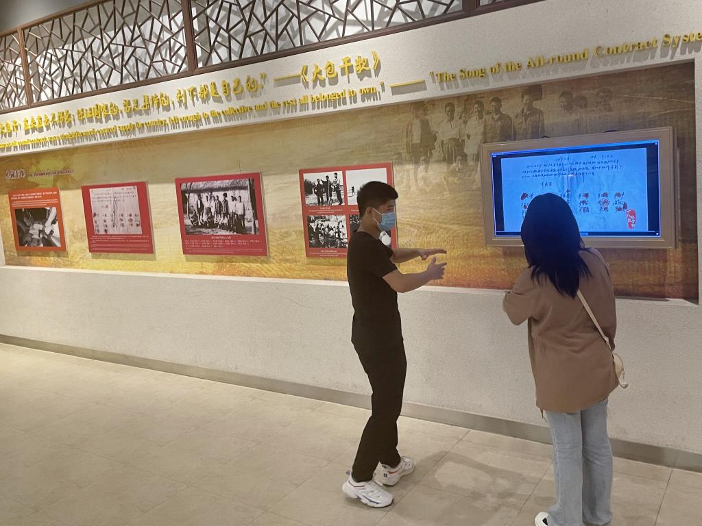 展馆共分为溯源、抉择、贡献、巨变、展望、关爱六个部分,这六个部分生动形象地描绘了大包干行动的初衷、所遇的困境和所做出的贡献。参观过程中,团队成员更加理解了大包干“敢为人先,不畏艰险,勇于突破,求真务实”的高尚精神品质。