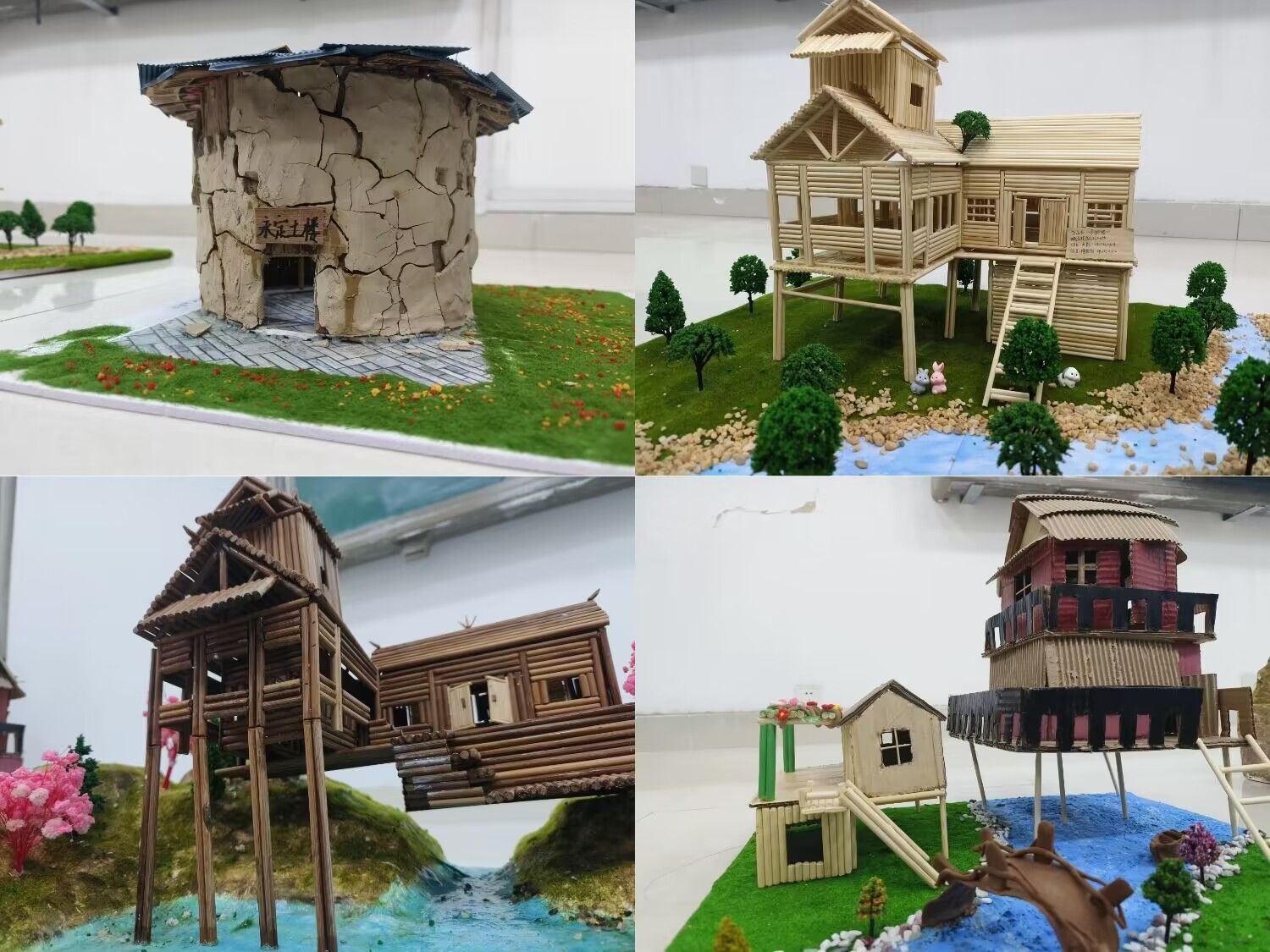 本次建筑模型设计制作大赛以“民族式建筑”为主题。在初赛阶段,共收集作品15份,经线上线下评比,共6支队伍脱颖而出进入决赛。决赛分为选手自主演讲、评委点评与提问两个环境。决赛过程中,各团队以PPT汇报的形式阐述本团队的模型制作理念和制作过程。评委老师从设计理念的新颖性、作品制作的精细度、PPT汇报的流畅度及建筑功能的牢固性等方面对每组作品做出客观评价和综合打分。