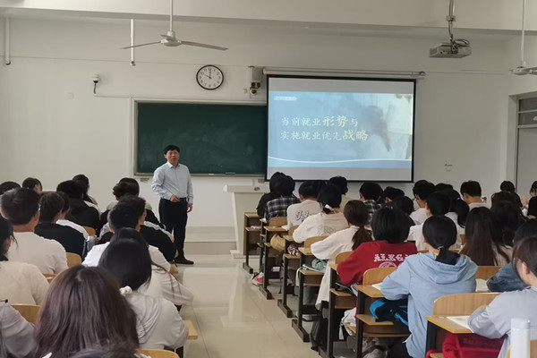 为深入学习贯彻习近平总书记对学校思政课建设重要指示精神,推进习近平新时代中国特色社会主义思想进课堂、进教材、进头脑,认真落实校领导为本科生讲授思政课制度,5月16日至17日,校党委书记时伟教授到龙湖校区和凤阳校区分别为财经学院2023级会计学专业和生命与健康科学学院2022级生物工程专业学生讲授“当前就业形势与实施就业优先战略”专题形势与政策课。