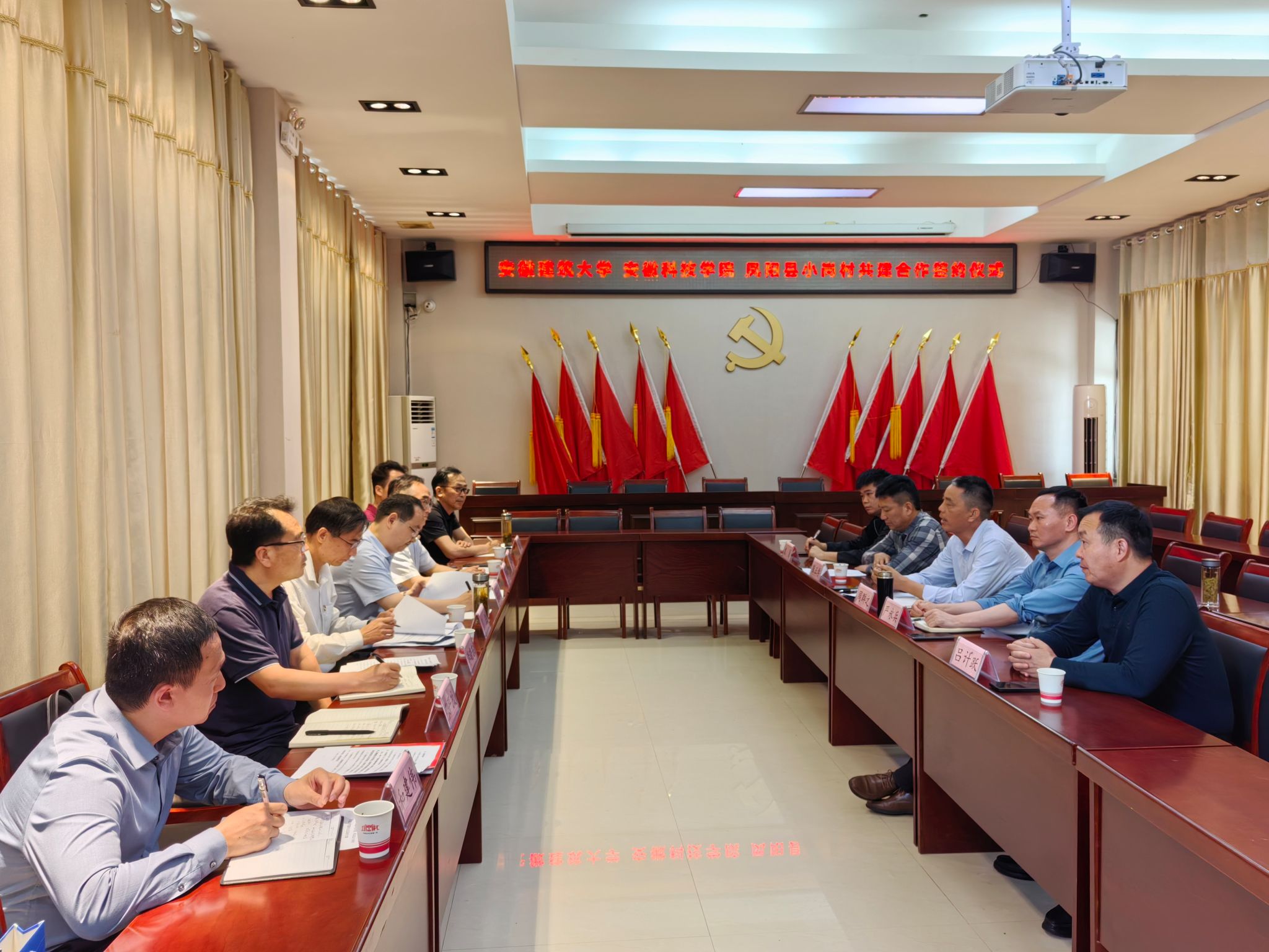 在签约授牌仪式上,三方还就如何推动党纪学习教育走深走实、助力小岗村特色产业高质量发展、创新高校大思政课建设、强化新时代高校劳动教育、深化大学生暑期社会实践活动、传承和发展地方特色文化等问题展开深入探讨,并就持续推进校地党建共建、创新协同育人举措等方面达成共识。