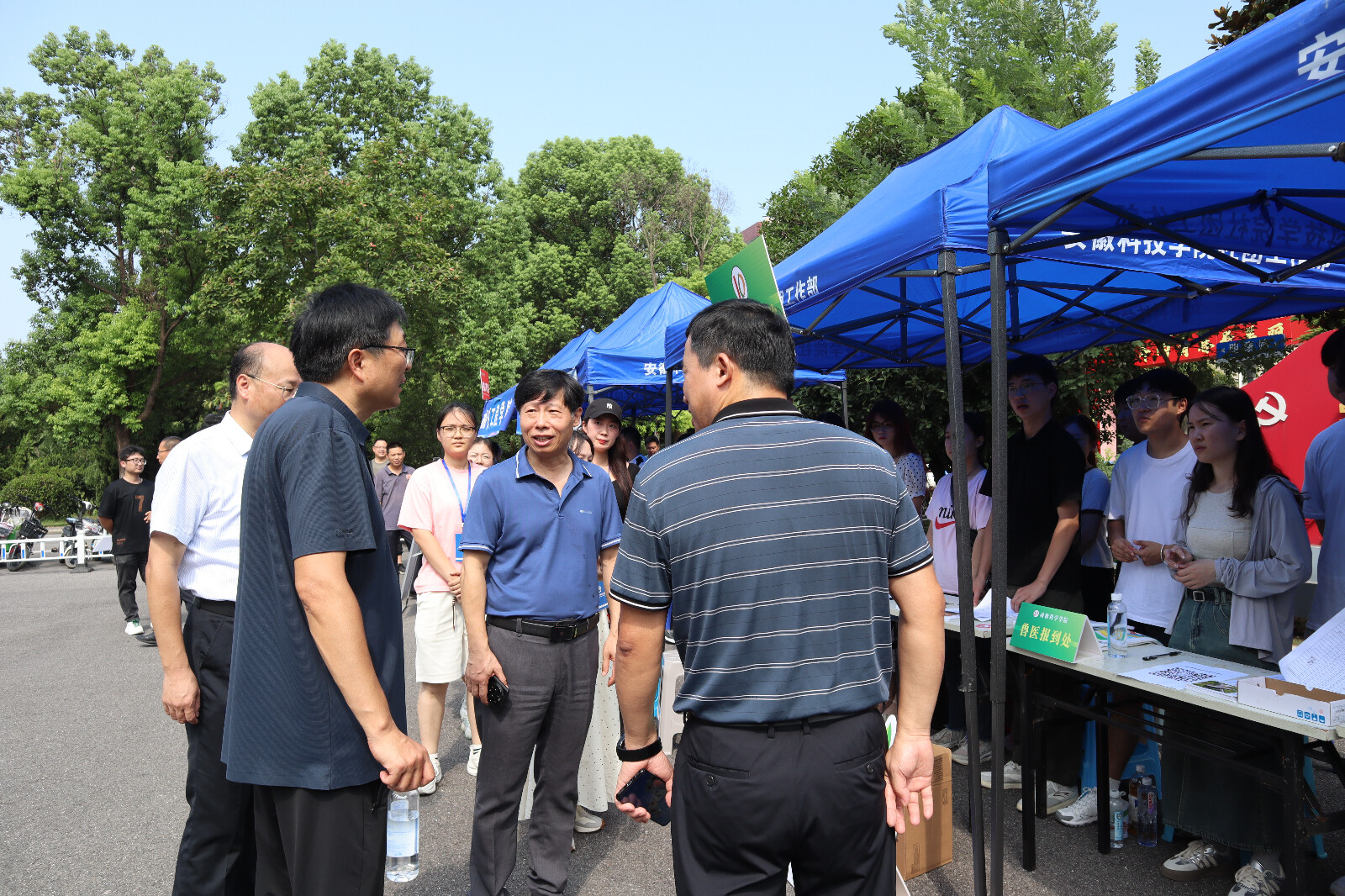 校党委书记时伟,党委委员、副院长王孝义到现场指导迎新工作。时伟和王孝义仔细查看新生发放材料,与新生亲切交谈,询问来校情况及适应新环境状况,鼓励新生们要尽快适应新的环境,努力学习专业知识,积极参与校园活动和社会实践,为自己的未来发展打下坚实的基础。强调全体迎新工作人员要以细致的态度,周到的服务迎接同学们的到来,在做好服务工作的同时要注意个人防暑。